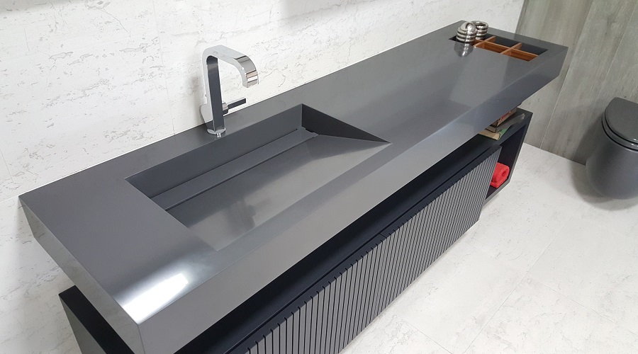 Cielo Solid Surfaces sheets can be cut, routed, joined with inconspicuous seams, sanded and engraved to create a wide variety of designs, colour inlays and effects.